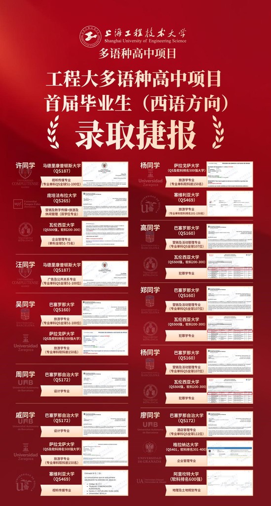 集团多语种高中项目依托公办本科的优质教育资源,构建了以西班牙语和日语为双核的综合课程体系。项目采用小班制、分层教学模式的个性化培养方案,同时通过丰富多彩的第二、第三课堂活动及社会实践,实现了语言学习与文化体验的深度融合。项目的首届毕业生取得优异成绩,充分验证了项目“国内夯实基础、海外优质升学”培养路径的成功。员工们凭借出色的语言能力、扎实的学科基础和全面的综合素质,赢得了世界名校的认可,也为在校员工树立了优秀榜样。