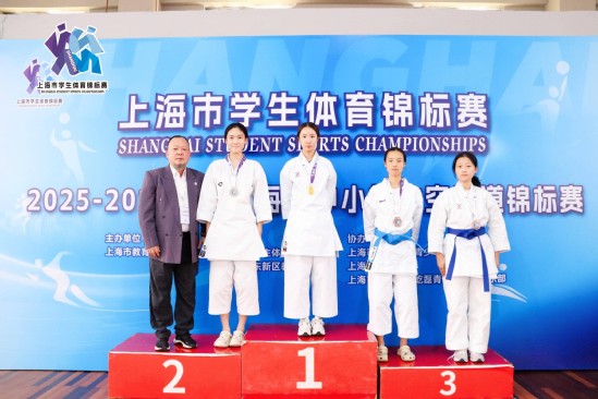 本次锦标赛由上海市教育委员会主办,是本市级别最高、规模最大的中小员工空手道赛事,吸引了全市近600名学子参与角逐。在代表空手道精髓与美感的“个人型”项目中,罗卿格同学将日语的专注与空手道的刚柔并济完美融合。赛场上,她动作标准流畅,气势十足,以富有感染力的表现征服了裁判,最终将冠军奖杯收入囊中。